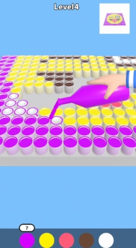 1、创新倒水物理引擎:基于真实流体动力学设计,油漆倾倒速度、角度与容器形状直接影响扩散轨迹,实现“层叠渐变”“漩涡混色”“边缘晕染”等自然艺术效果。