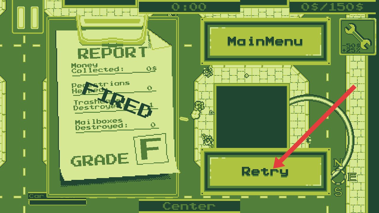 2、若游戏关卡失败,工点击界面中的【Retry】按钮,即可重新尝试当前关卡,争取更好表现。