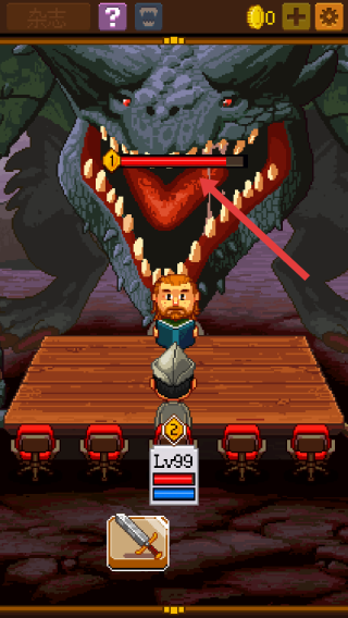3、遭遇巨龙Boss,操控Lv99角色,点击武器图标攻击,留意血条,策略性战斗,击败巨龙。