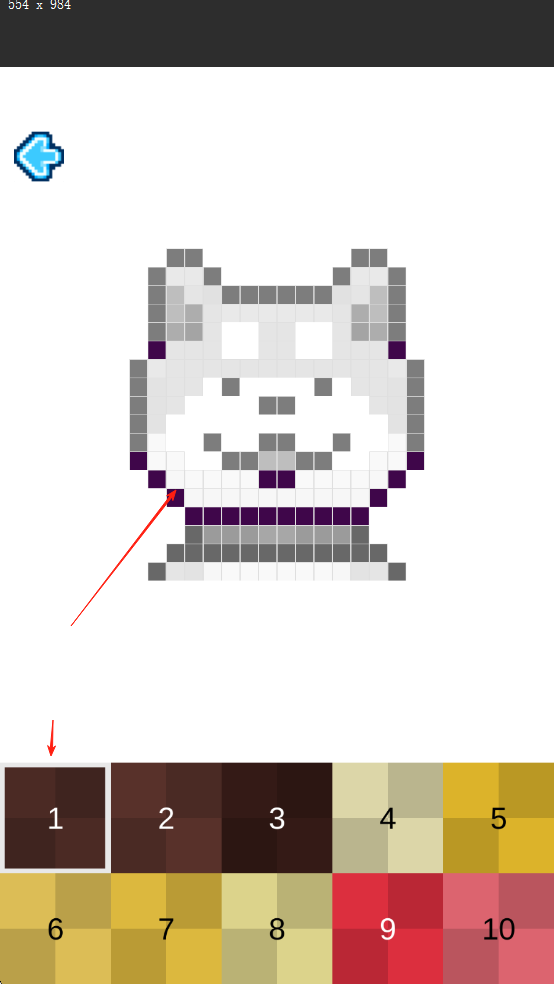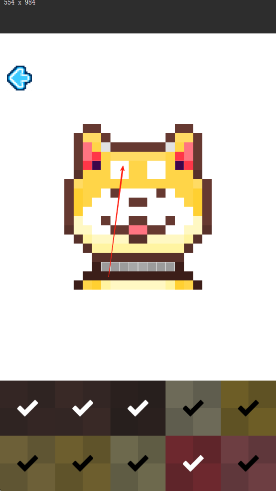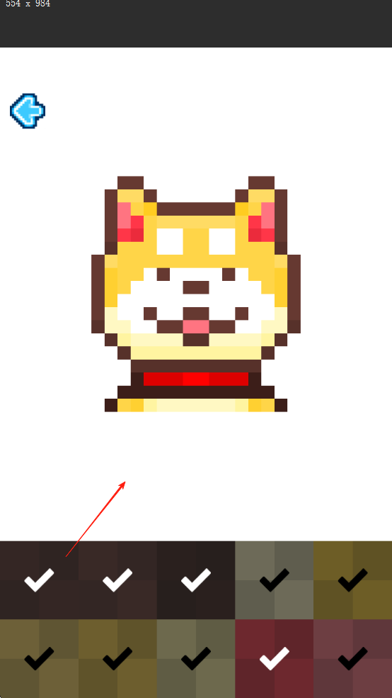 1、进入游戏后选择心仪的像素柴犬图案,点击灰色像素块,根据图例提示的颜色编号,点击对应色板为图案填色。
