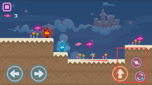 1、控制双角色移动,玩家需要通过点击屏幕控制红男孩和蓝女孩移动和跳跃,两个角色可以分开操作,需要玩家合理分配注意力。