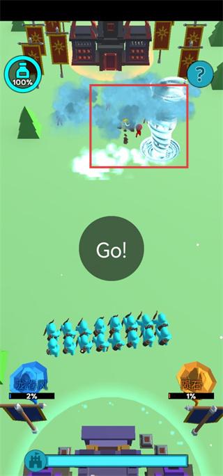 3、当下方龙卷风和陨石到达百分百时,我们就可以释放强大的技能了。