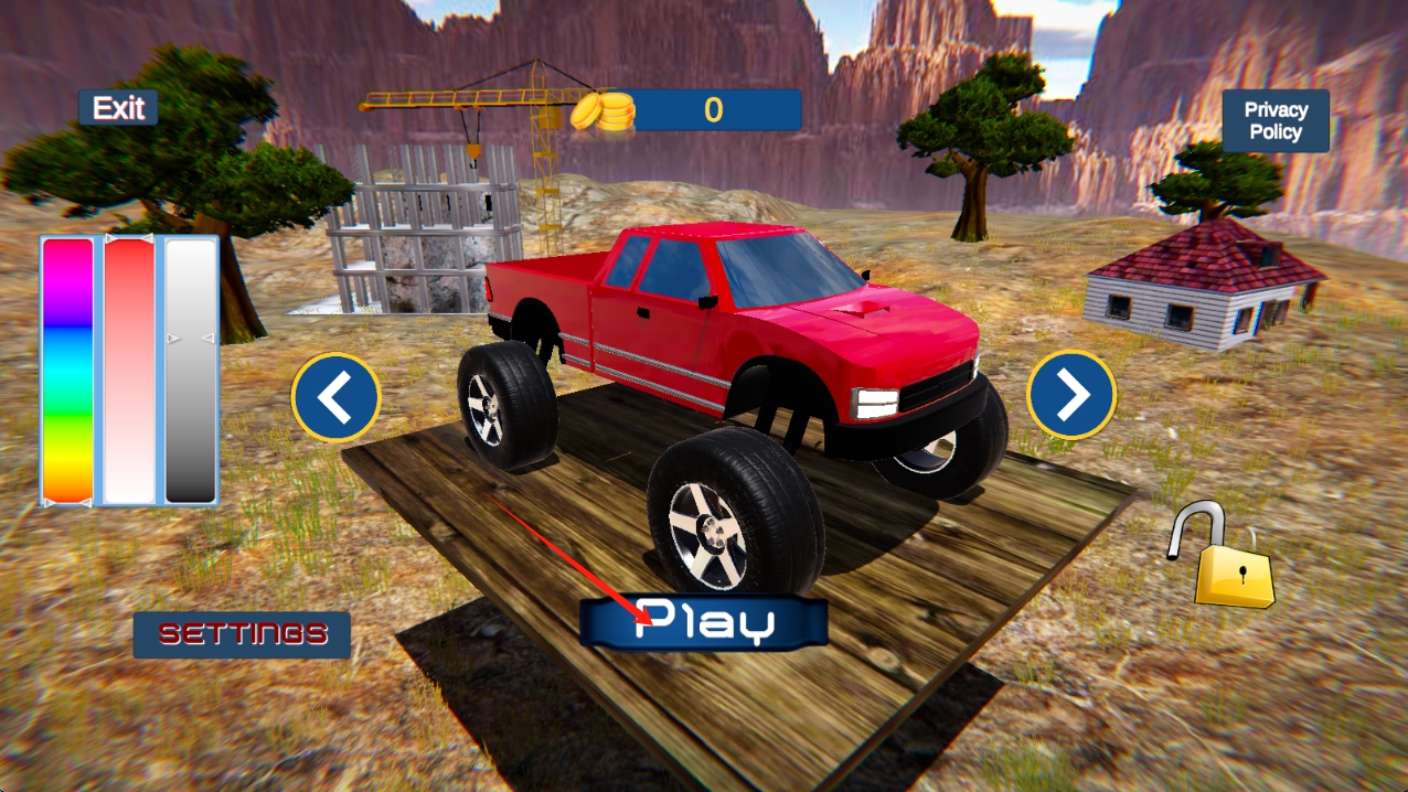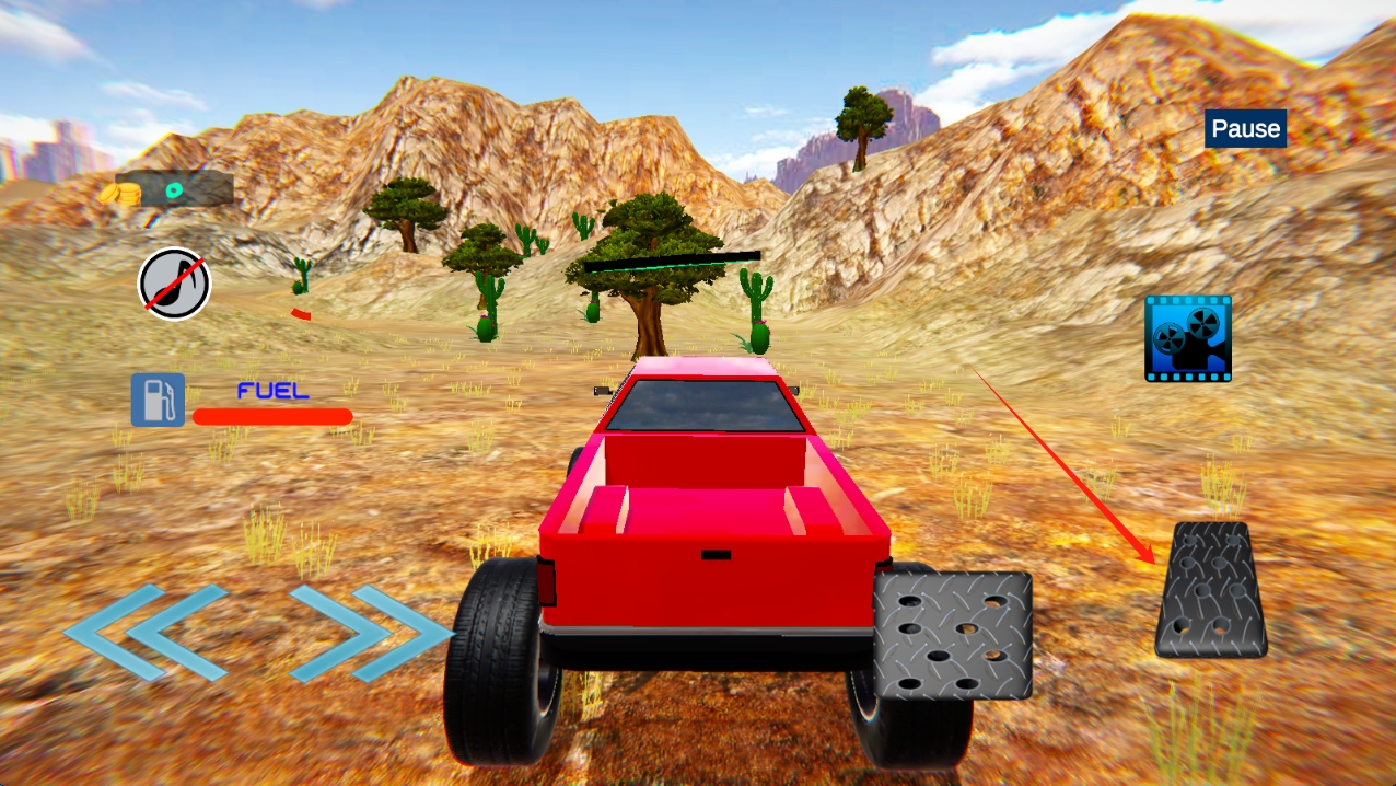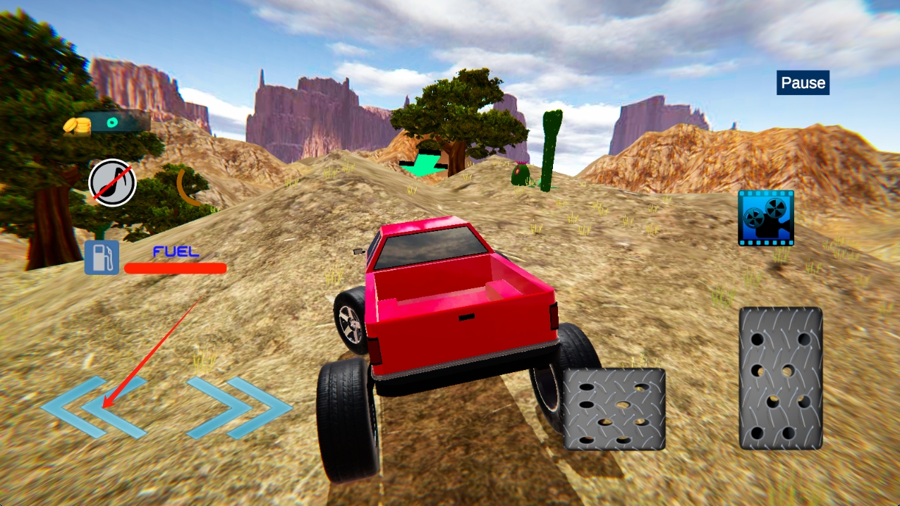 1、点击按钮开始游戏,利用连续完成高难度挑战触发"越野大师"状态,通过暂停功能调整悬挂参数。