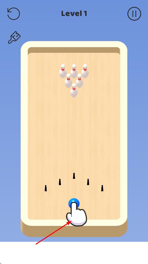 1、进入关卡后滑动屏幕瞄准球道,长按屏幕下方力度条蓄力,根据球道坡度与障碍物距离判断释放时机,松手投掷保龄球。