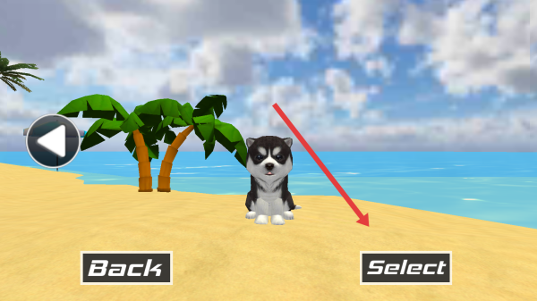 2、在角色页,选中心仪宠物后,点击【Select】确认,进入海滩主场景,开始宠物模拟互动。