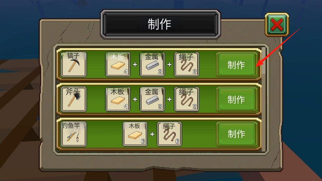 2、收集材料,进入制作界面,选想造的工具,点击制作,合成新道具使用。