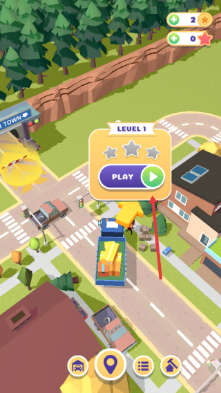3、点击关卡处“PLAY”按钮,启动LEVEL1的货物运输挑战任务。
