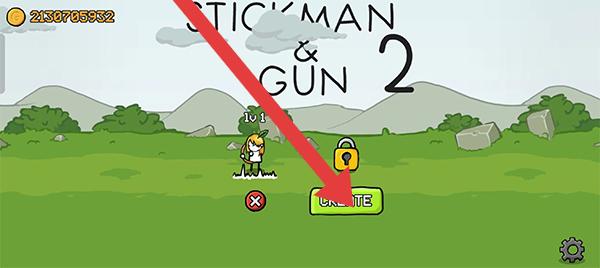 2、进入“STICKMAN&GUN2”界面,点击绿色【CREATE】创建角色,开始游戏;红色叉号可重置角色,黄色锁需满足条件。