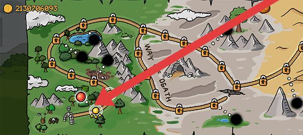 1、在地图界面,观察已解锁关卡(亮圈处),选择其一进入,按路线(如“WAY OF DEATH”)推进,积累金币(左上角)。