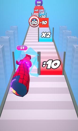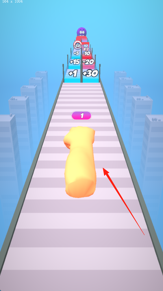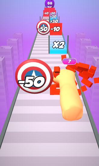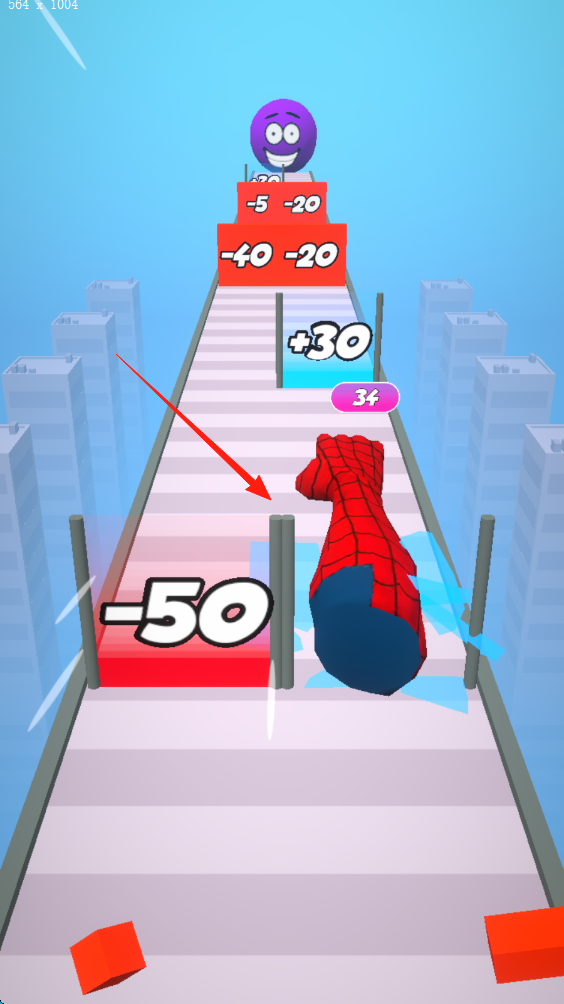 2、避开减分方块,优先撞击加分方块,让拳头变大变强,抵达终点。