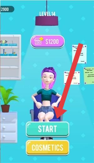 1、在LEVEL14界面,点击【START】按钮,消耗$1200开启美妆挑战,进入客户美妆服务流程。