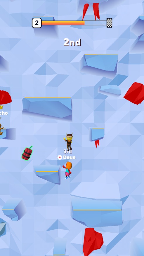 2、精准把握跳跃时机与抓握点切换,巧妙利用岩壁凸起借力,通过收集特殊道具恢复体力,预判落石轨迹提前调整路线。