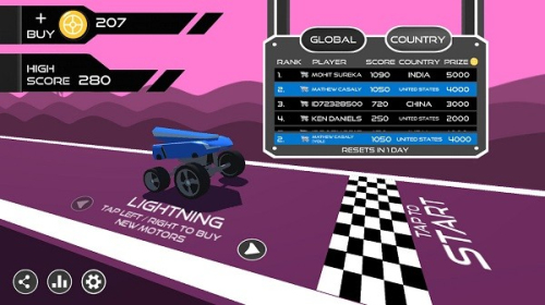 1、玩家需通过点击与按住,成功控制车辆完成各种动作,灵活的手指操作是通关的关键,增加了游戏的趣味性和挑战性,增强了玩家的参与感。