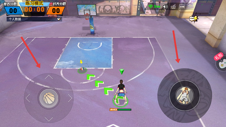 3、捡起球开始练习模式,跟随引导练习各种运球技巧,当然也包括扣篮。
