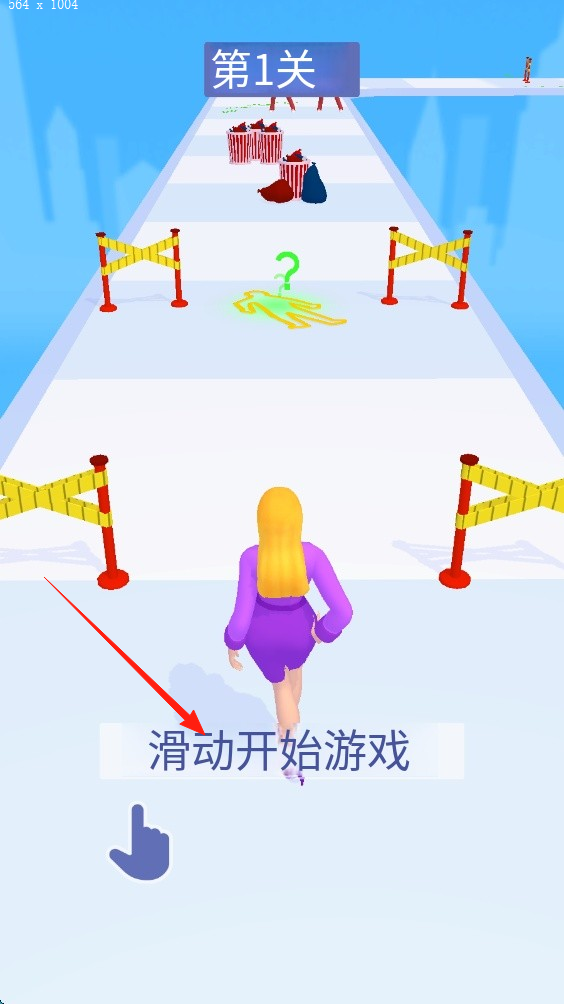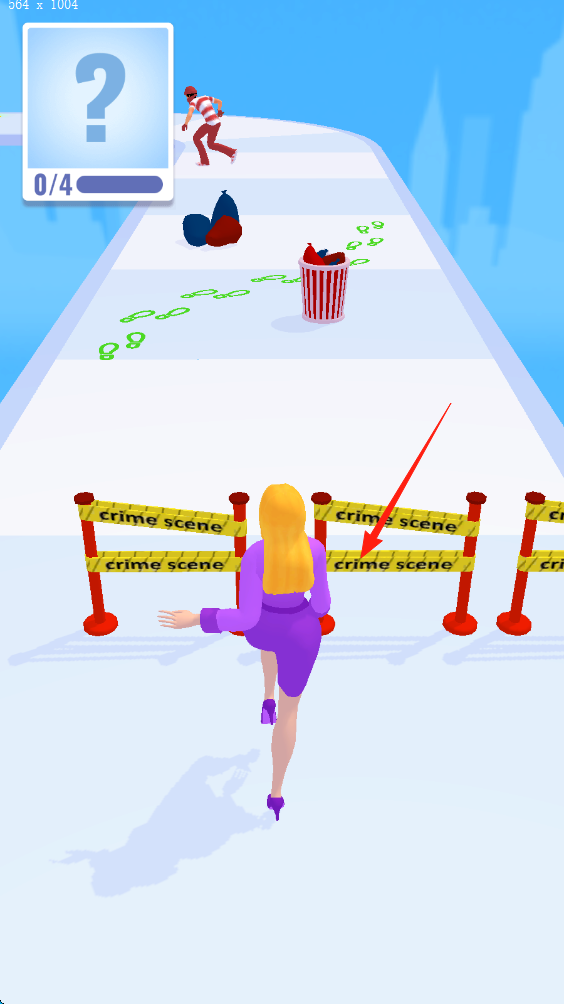 1、滑动开始,操控角色在跑道前进,收集线索,留意可疑人物,推进关卡。