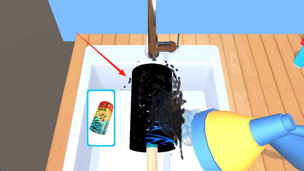 3、喷涂后将物品放水槽,用工具冲洗,展现最终效果,完成创作流程。