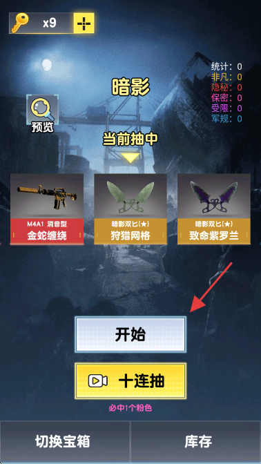 3、点击【开始】单抽,或【十连抽】,抽取武器道具。