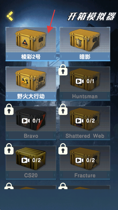 1、点击主界面【开始抽箱】,进入宝箱选择页面。