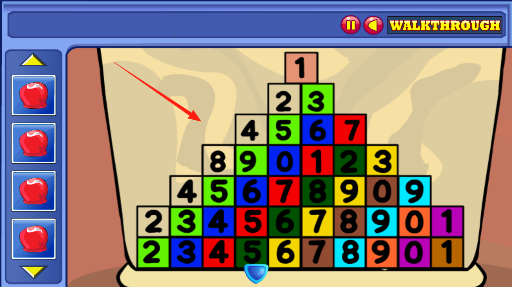 2、遇到数字金字塔,按规律解谜,点击数字方块,组合出正确序列,推进流程。