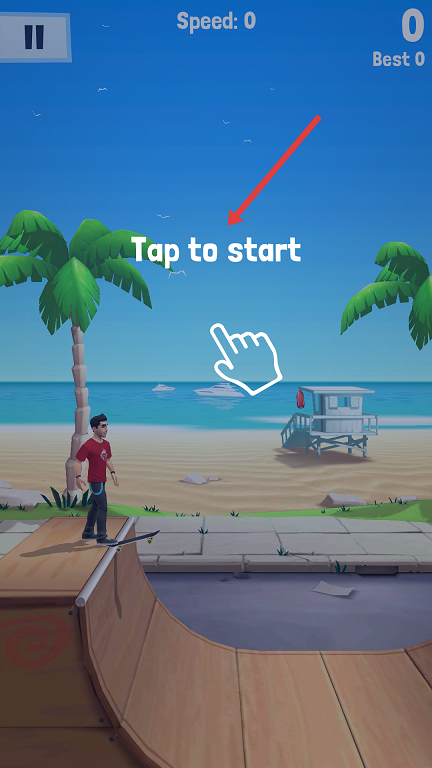 1、点击PLAY进入场地,点击屏幕开始下滑并在对面腾空。
