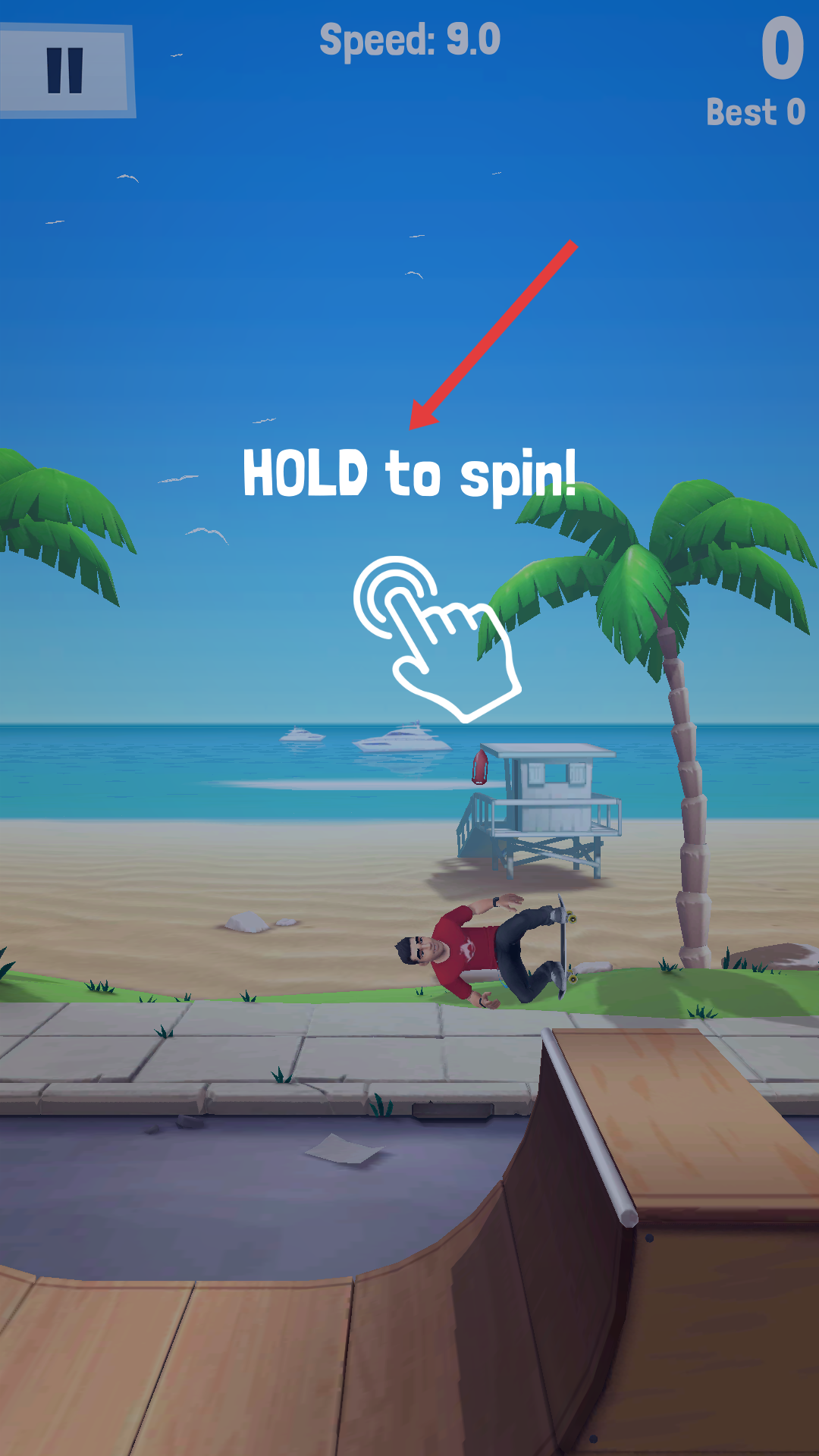 3、确保反转后的滑板与滑道平行,否则会摔倒,后面会解锁更多技巧。