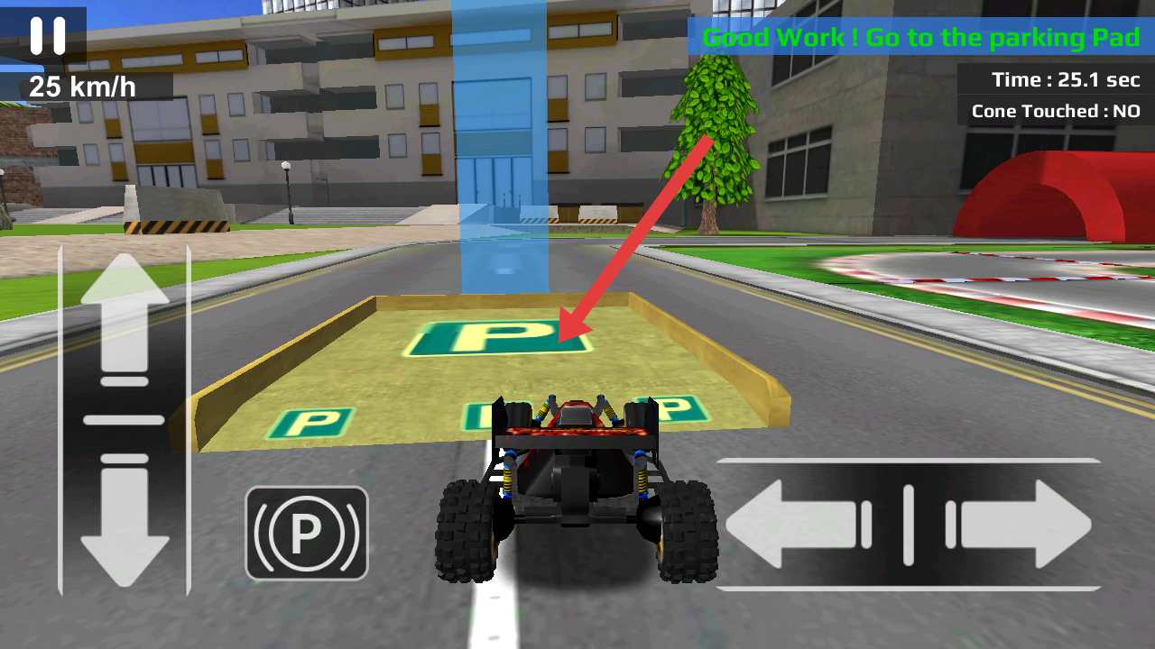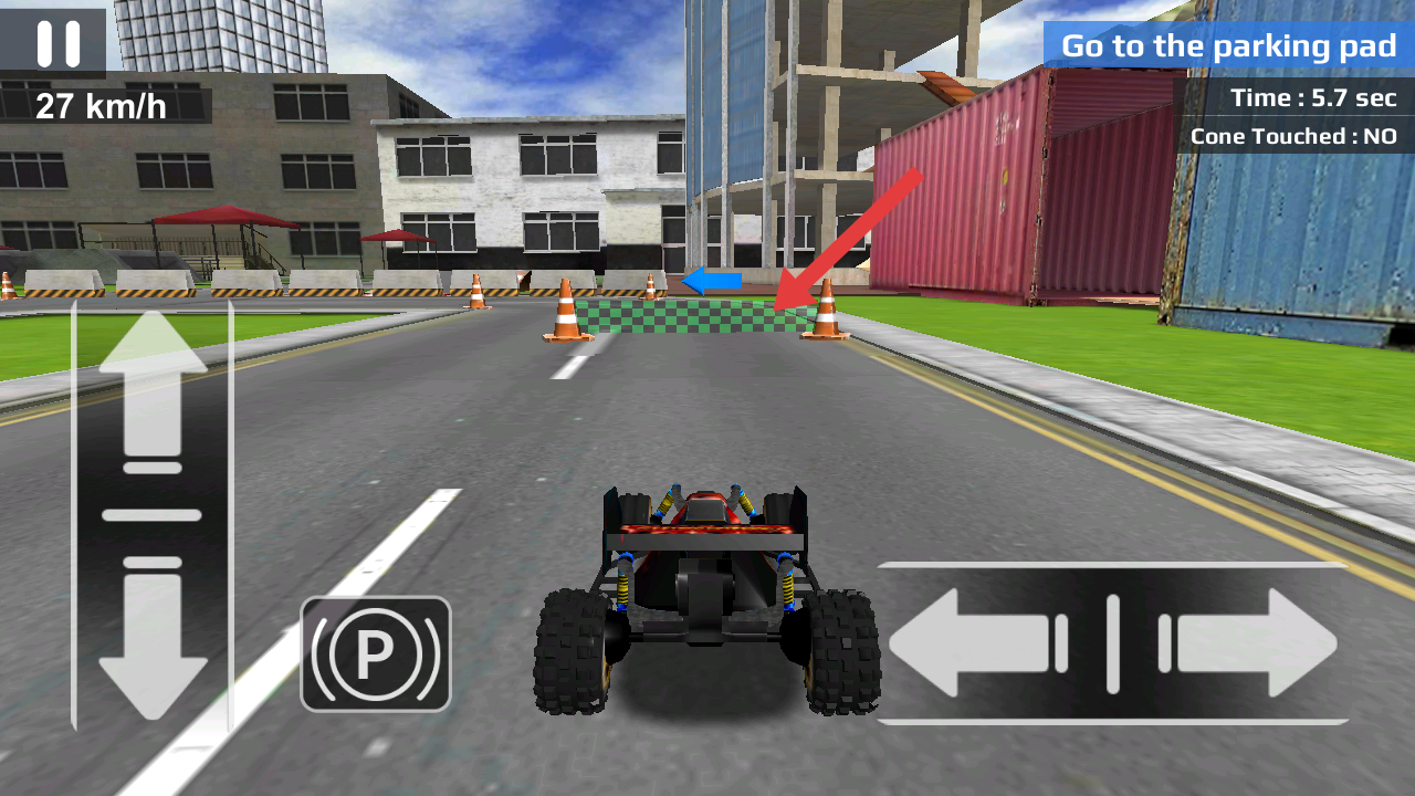 3、继续驾驶车辆,需要将自己的赛车平稳驶入标有【P】字的黄色停车区域,完成关卡任务。