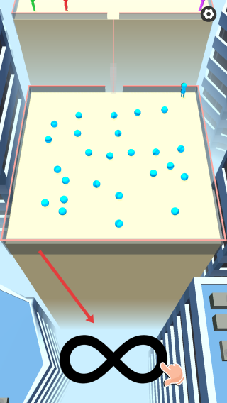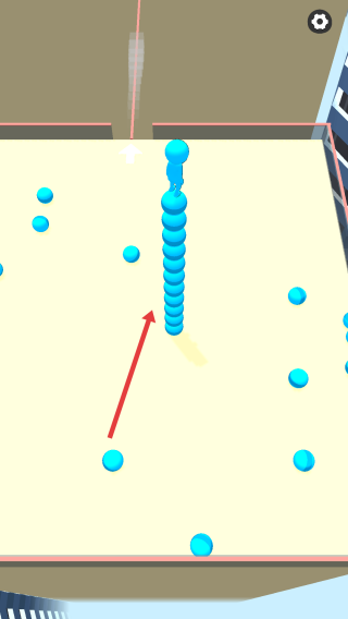 2、操控蓝色角色遍历平台,吸附散落的蓝色小球,逐步堆叠成竖直柱体。