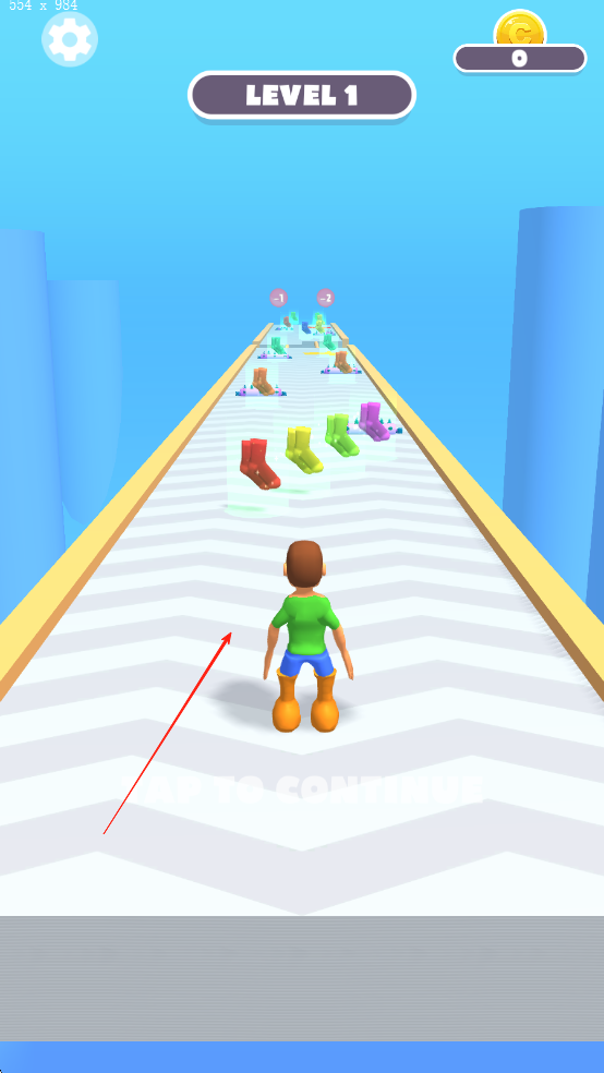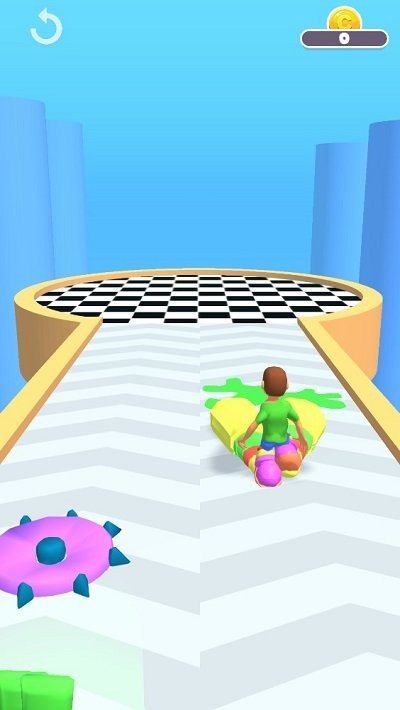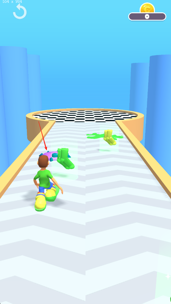 1、踏入游戏,映入眼帘的便是色彩斑斓的赛道,滑动屏幕控制角色移动方向,开启收集袜子之旅,率先熟悉操控手感,准备迎接挑战。