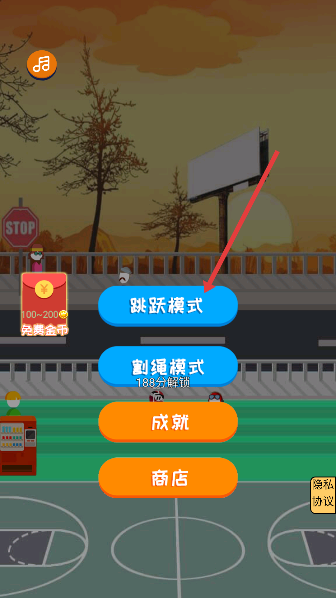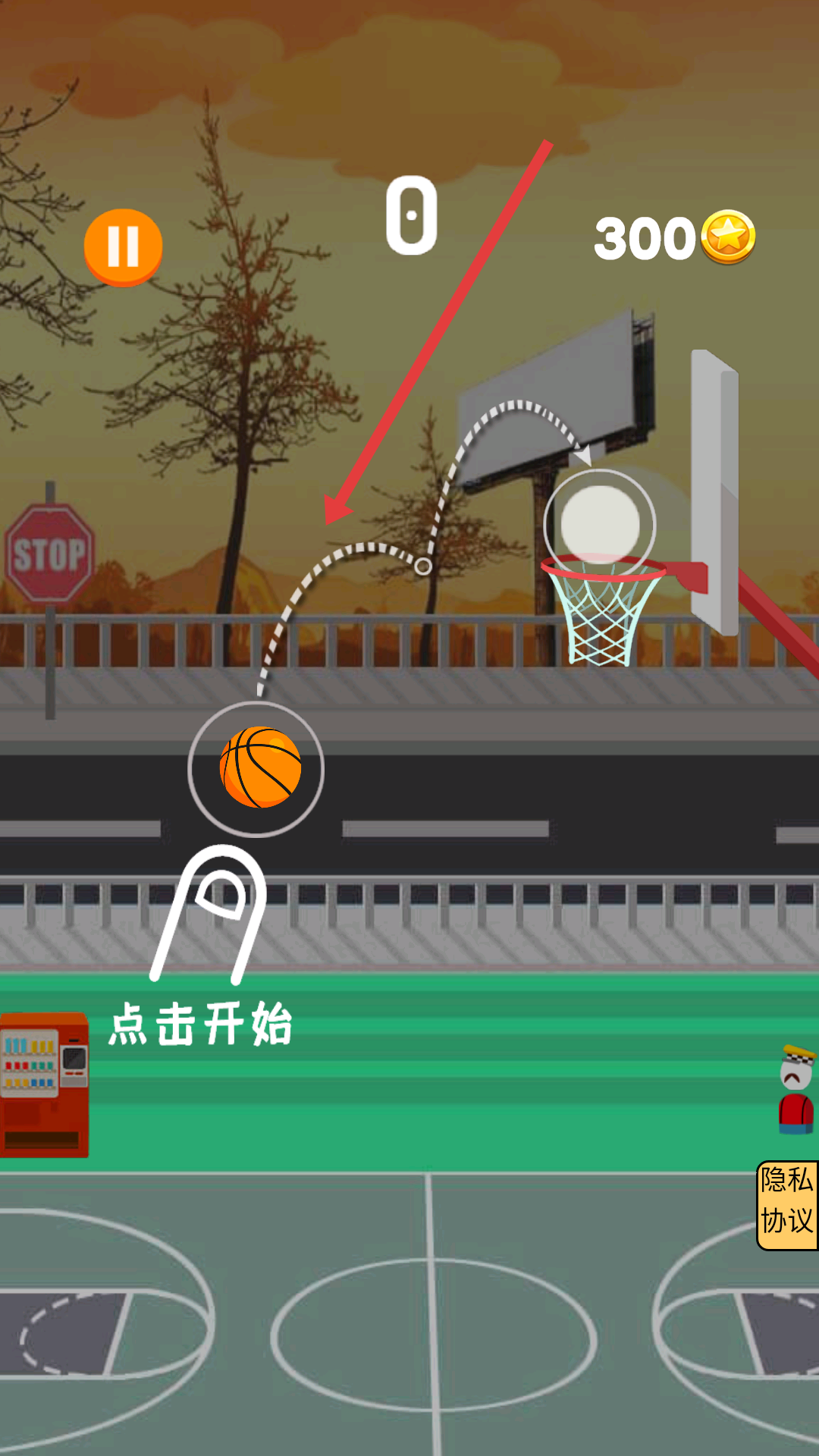 1、点击游戏模式,单指点击让篮球跳跃至半空时,再次点击让篮球飞向篮筐。