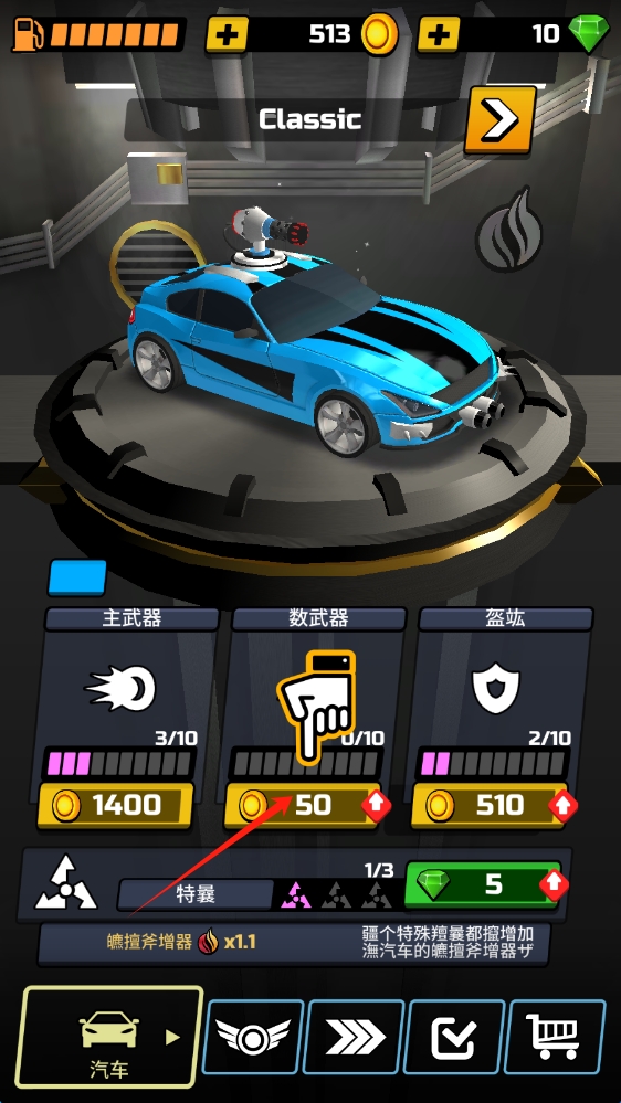 2、点击升级,注意收集限时零件,可能用于合成稀有车型,利用每日登录奖励获取免费车辆保养与加速解锁。