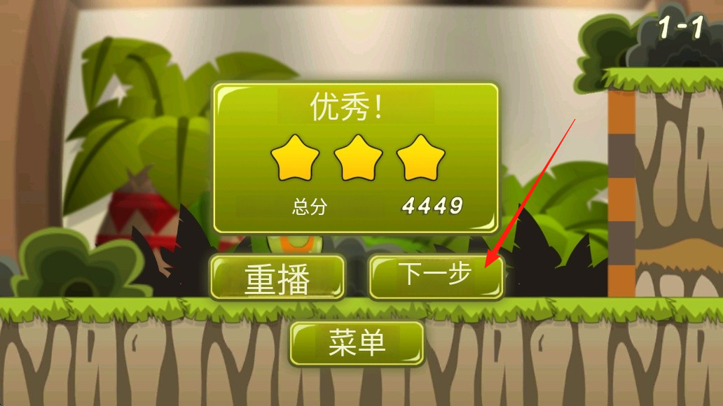 2、关卡获三星后,点击下一步,进入新关卡,根据提示,尝试新操作方式。
