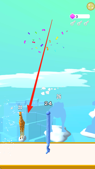 2、无尽挑战:在随机生成的赛道上持续奔跑,尽可能获得高分,随着进度推进,展示玩家的脖子长度,难度将逐渐增加。
