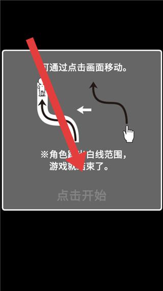 3、开始关卡后,依据“可通过点击画面移动”规则,点击屏幕引导角色沿白线移动,注意别让角色跑出白线。