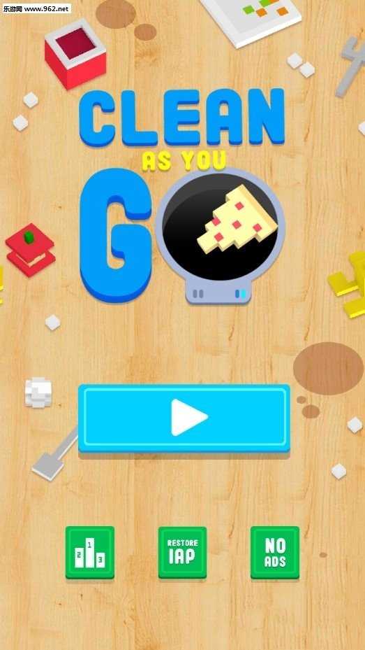 2、在启动页,点击蓝色播放按钮,进入游戏主界面,选择关卡,开启“Clean-As-You-Go”的清洁冒险。