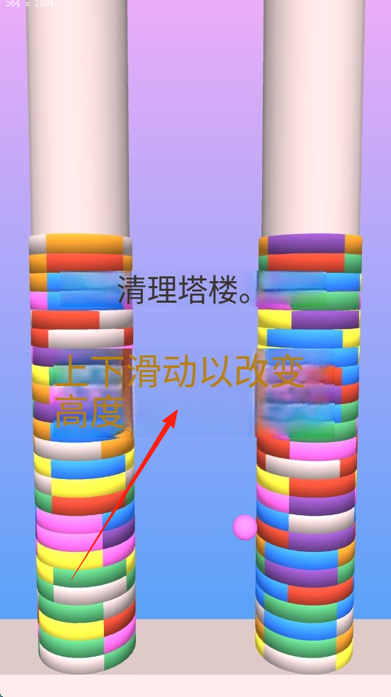 1、上下滑动调整清理工具高度,让其匹配塔楼彩环,消除彩环,清理塔楼。