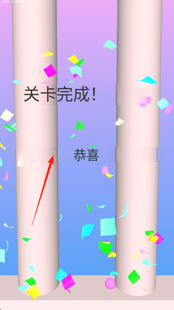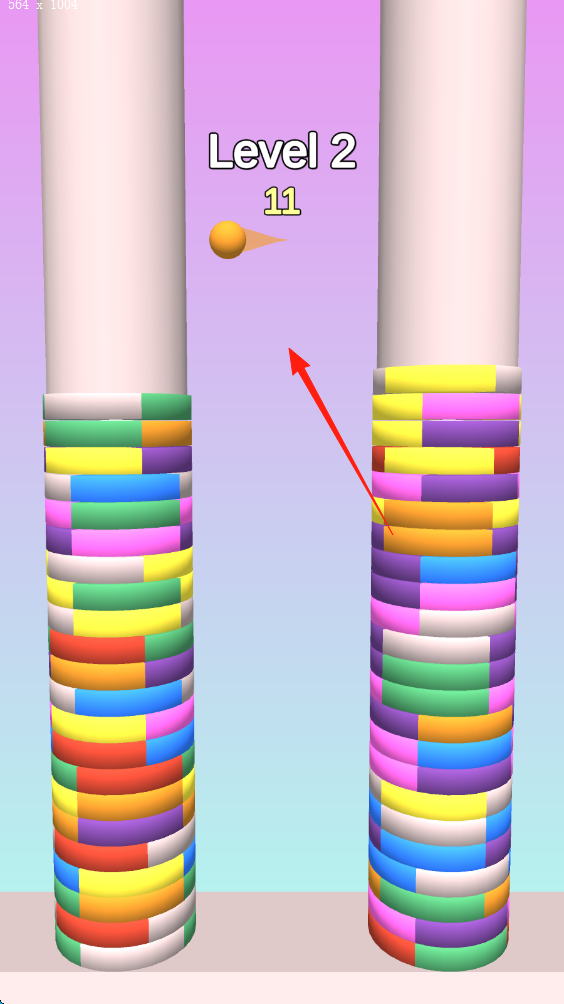2、成功消除塔楼所有彩环,显示关卡完成,进入下一关,继续清理新塔楼。