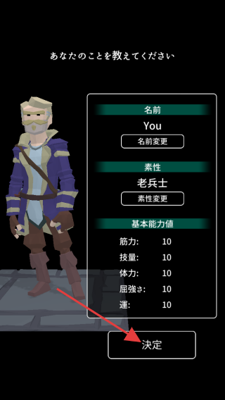 1、在角色创建界面,确认【名前】【素性】及【基本能力值】,点击【決定】,开始游戏。