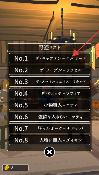 3、打开【野盗リスト】,查看目标(如ザ・キャプテン‐バルザード),选择对应野盗,前往讨伐。