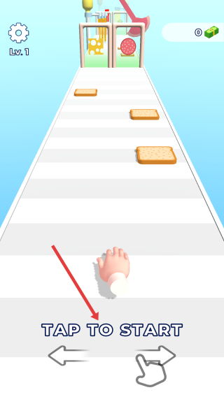 1、点击“TAPTOSTART”,启动面包片沿跑道奔跑。