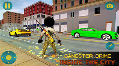 3、操控角色在城市街道移动,按箭头指引探索,完成任务、收集资源,推进“Gangster-Crime”剧情。