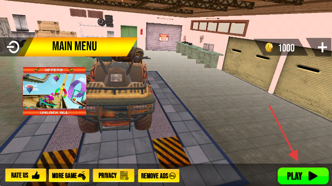 1、点击界面右下角绿色【PLAY】按钮,启动游戏,驾驶车库中的车辆开启冒险。