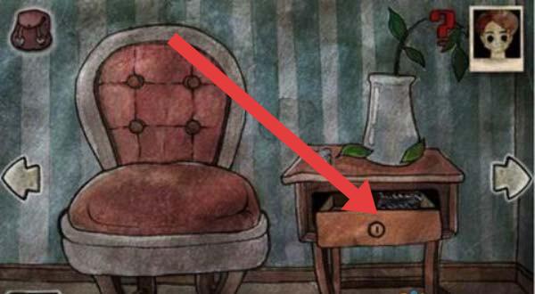 2、切换至椅子与抽屉场景,点击抽屉尝试打开,查看花瓶、椅子等可互动点,收集道具或线索,为后续解谜铺垫。