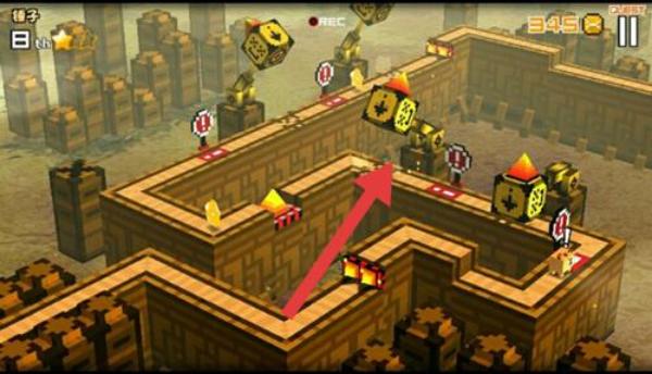 2、操控方块角色跳跃,躲避齿轮、尖刺,沿迷宫路径收集金币。