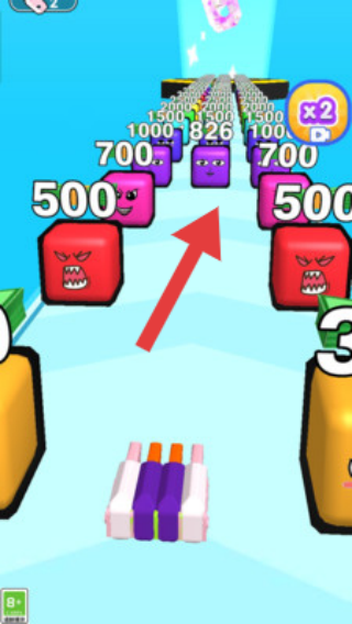 2、凭积累数值撞击前方紫色方块群,突破阻拦。