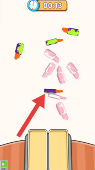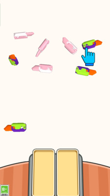 3、将各色口红分类投入对应槽位,完成关卡。