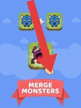 3、依据合成玩法,点击【MERGE MONSTERS】指引区域,将怪物拖至此处,合并生成新怪物,提升怪物等级与能力。
