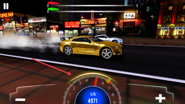 3、比赛中,关注转速表,按箭头提示换挡、加速,在城市道路超越对手,争取胜利。