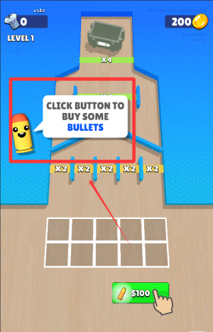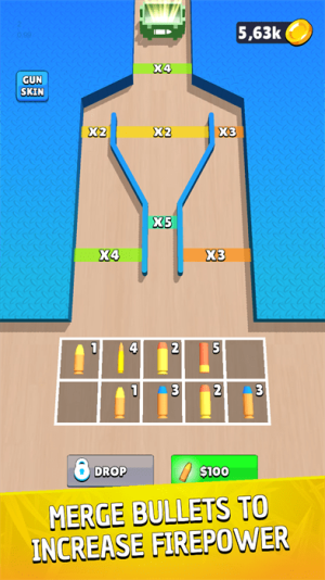 1、玩家要通过滑动屏幕来把控弹药融合方向,把相同数字或颜色的子弹合成为更高等级的武器弹药。