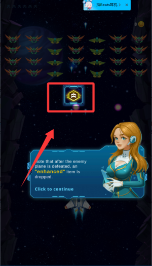 1、进入游戏先熟悉操作,滑动虚拟摇杆控制战机移动,飞机自动发射子弹。