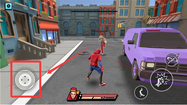 2、开始游戏后滑动左侧摇杆移动角色,右侧则是攻击。